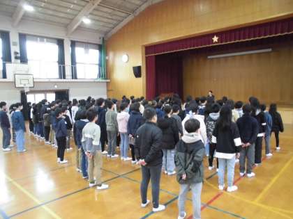 体育館でのリコーダーと歌の練習を行いました。