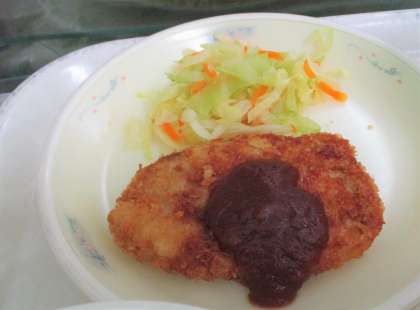 ソースも給食室の手作りで、さとう・ケチャップ・トマトピューレ・ウスターソース・洋からしを使って作りました。