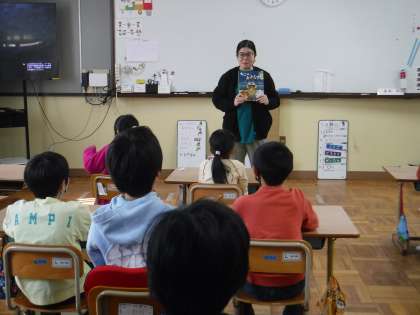 「ほわほわさくら」「ねこのおふろや」「かいわれざむらいとだいこんひめ」「せかいいちのはなし」の4冊の絵本を読聞かせしてもらいました。