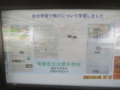 鴨川茶店に掲示されていた5年生の鴨川の学習の掲示物は、