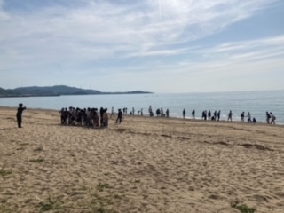 部屋の確認をしたあと、近くの砂浜に行ったり、夕食に出る魚を触らせていただいたりしました。