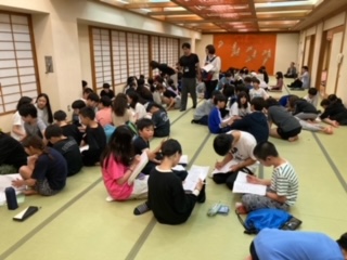 夕食もしっかり食べて、みんな元気です。1日の振り返りをしています。今日のHPの更新は終わります。しっかり寝て明日も元気に活動しましょう。
