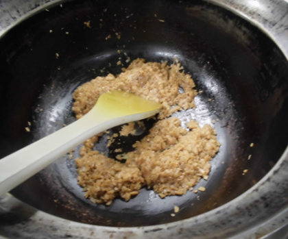 給食のカレーは肉を炒める前にまず、全体の三分の一の玉ねぎをきつね色になるまで炒めています。