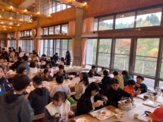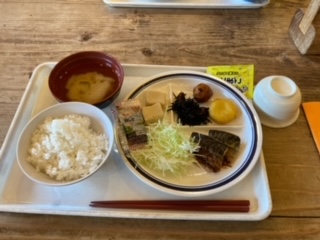 ?食堂の朝食です。パン?ご飯?どっちにしよう?