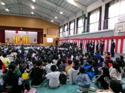 続いて、始業式を行いました。校長先生のお話に続いて、今年度の大宮小学校の教職員の紹介がありました。