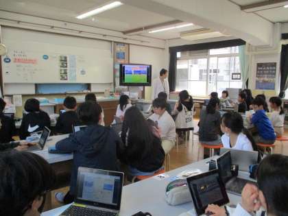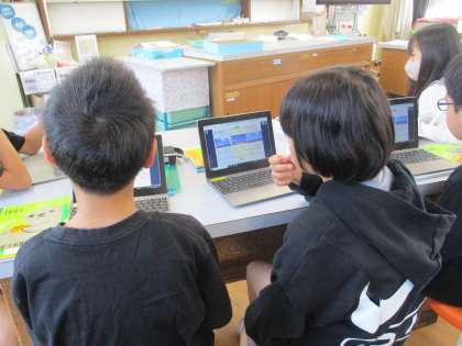 メディア機器を使って学習をすすめています。雲と天気の変化について考えました。
