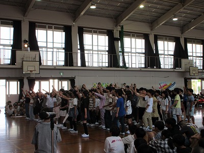 各学年、順番に1年生をむかえる発表をしました。2年生、3年生の明るい歌声が体育館に響き渡りました。