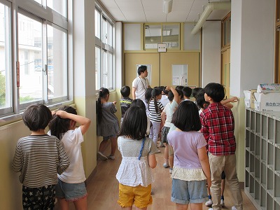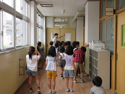 1年生を学校たんけんに連れていくために、2年生はたんけんの下見をしました。「ここでどんなことを説明する?」という先生のよびかけに、一生懸命考える姿が見られました。