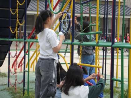 いいなと思う糸と、場所のおもしろい組み合わせを考え、糸でできることを試しながら、つくりかえたり加えたりすることを楽しみました。