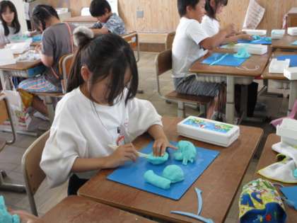 ねんどを糸やへらで切ったり、道具を使ってかきだしたり、くっつけたりして活動しました。