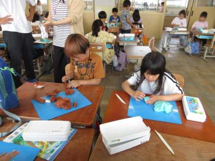 できた形を組み合わせたり、手や用具でさらに形を変えたりしながら工夫して表しました。