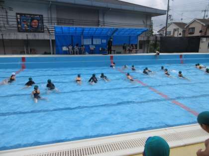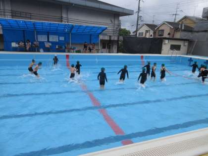 低水位のプールで活動をしました。元気いっぱい楽しく活動をしました。