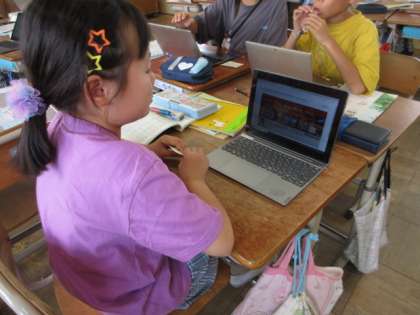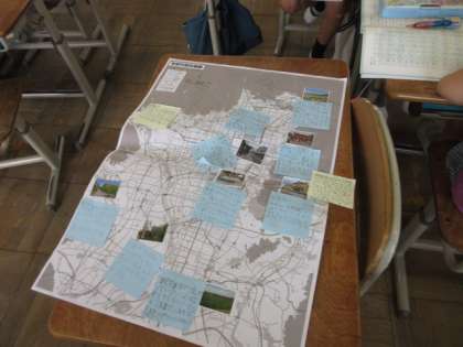 平安神宮のことを調べました。そのほか、グループで京都市の特徴的な地域を調べ、地図にまとめました。