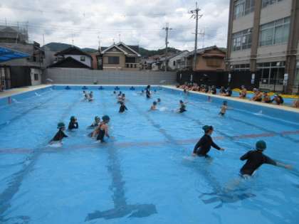 今日もプール日和でした。ダルマ浮きやふし浮きなどの活動をしました。バタ足に挑戦したら、たくさんの子どもたちが元気にバタ足で泳ぐことができていました。