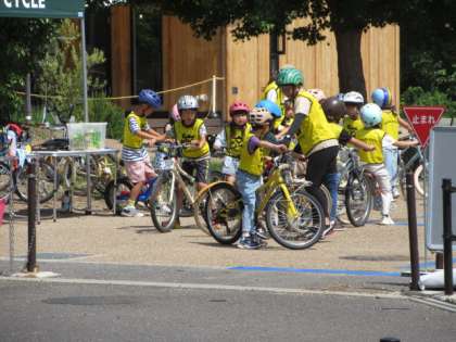 実際に自転車に乗って実習を行うことができました。一人一人の体の大きさに合うヘルメットや自転車を準備していただきました。