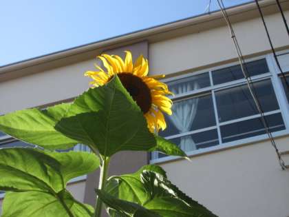 青空に向かって、力強くきれいに花を咲かせています。いよいよ夏本番です。