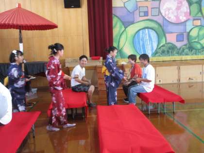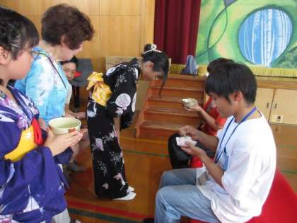 お茶席で、茶道部の子どもたちから、おいしいお茶とお菓子をいただきました。