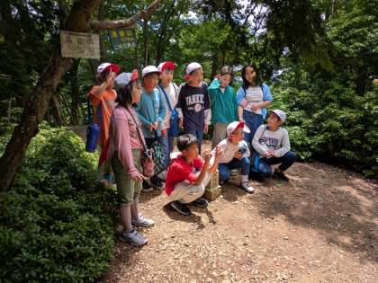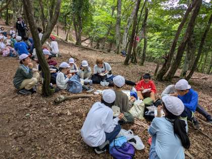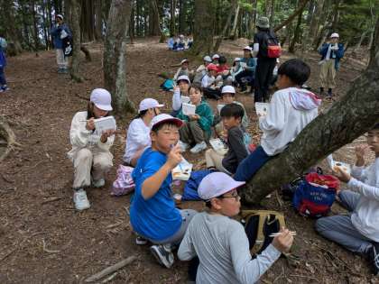 みんなで励まし合って、滝谷山に到着しました。その後、昼食です。がんばって登った後のおにぎりは、格別です。