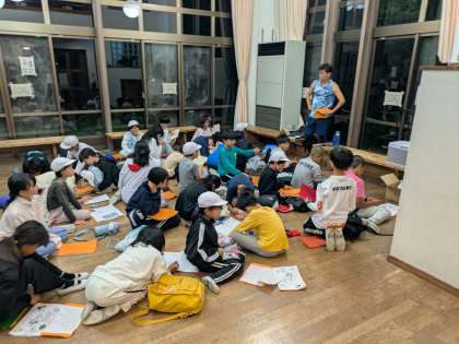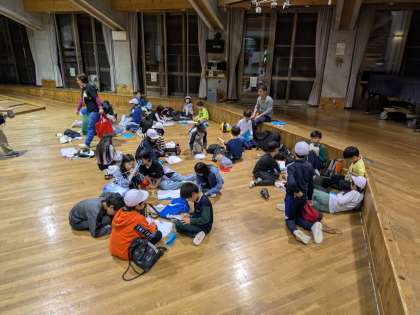 山登りにキャンプファイヤー、とても充実した1日となりました。友だちと励まし合えたこと、みんなで楽しめたこと、しっかりと振り返りました。