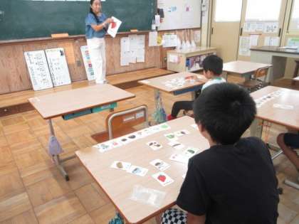 先生の英語を聞きながら、どのカードなのかを選びました。