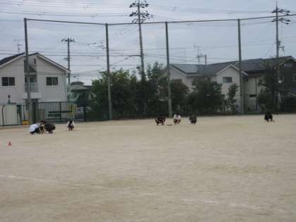 スポーツフェスティバルにむけて、運動場のラインテープのはりかえを、教職員で行いました。