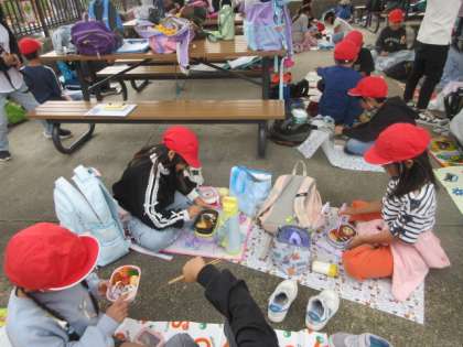 お弁当の時間は、グループで楽しくお弁当を食べました。最後はクラスごとに集合写真を撮りました。保護者の皆様、朝早くからお弁当など、準備にご協力いただき、ありがとうございました。