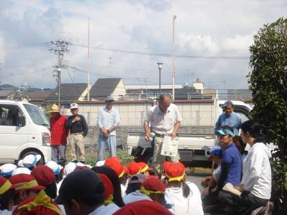 9月16日(水),1年生は大宮小農園に,大根の種をまきました。畑の先生が9人来て下さって,初めに大根のこと,種まきの仕方などを教えて下さいました。