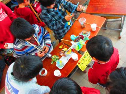4日(火)は,「秋のフェスティバル」でした。2年生のつくったさまざまなゲームに挑戦し,楽しい時間を過ごすことができました。どんぐりやまつぼっくりで作られたおもちゃや,磁石を使った魚釣りなど工夫された遊びに,1年生からは「2年生,すごいなぁ〜!」「僕たちも作ってみたいなぁ!」という声が聞こえました。2年生,ありがとうございました♪