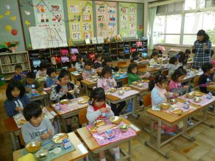 初めての給食、どうでしたか?好き嫌いせずにしっかり食べて、元気なからだをつくろうね。