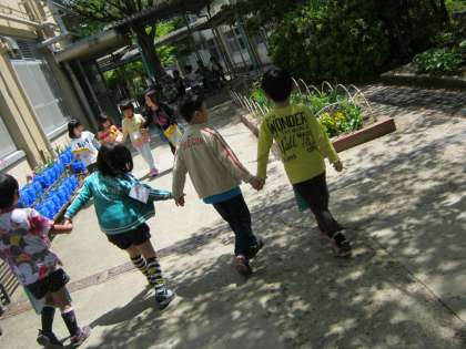 25日(木)に学校探検をしました。1年生の手をひいて,学校中を案内します。当日にむけて,学校中の教室に案内ポスターを掲示したり,説明の仕方を考えたりしました。1年生の頃よりもお兄さん・お姉さんになった2年生のみんなは,はりきって学校案内をしてくれました。
