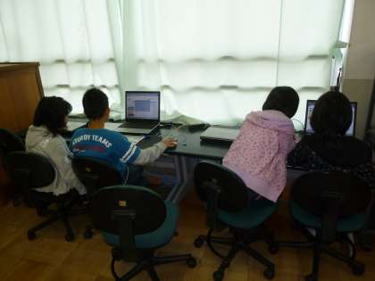 廊下を歩いていると、コンピュータ室で授業をしているよう。何を勉強しているのかな?5年生が理科の学習で天気図を立ち上げていました。「明日の天気はどうなの?」と尋ねると「この雲が移動していくから、多分晴れると思います」次の日、ちゃんと晴れまたよ。