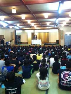 ぞう列車がやってきたの著者、小出隆司先生が来てくださり、戦争の悲惨さや当時の動物園の様子をお話していただきました。みんな真剣な表情で聞いていました。最後にはハーモニカ演奏をしていただき、ぞうは鼻でふくといって、鼻でふいてみせてくださりました。みんな驚いていました。