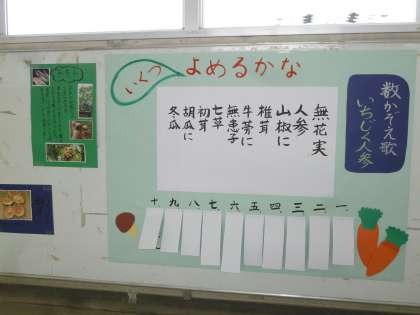 校内にはいろいろな掲示物があります。子どもたちの作品もそうです。また、当番表や約束ごとなどもあります。クラスのめあても教室に掲示してあります。