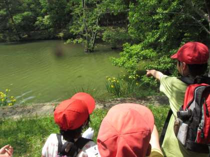 22日(水)に校外学習で宝ケ池公園に行ってきました。はじめに池のまわりをグループにわかれて散策をしました。そのあと,平安騎馬隊の練習風景を見て,公園に行き青空の下でお弁当を食べました。お昼からは,遊具でたくさん遊んだり,おにごっこをしたりして汗をかき,楽しい時間をすごせたようです。国語で「たんぽぽのちえ」を学習しているので,子どもたちはたんぽぽを見つけては,「今は綿毛を飛ばして仲間をふやすときやな〜」と話していました。2年生はじめての校外学習,すてきな思いでになりました。