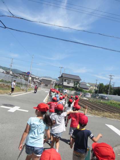 18日のまちたんけんに向けて,実際にたんけんするときのお店や道を確認しながら,道の歩き方やマナーを学習しています。3回にわけてお店をまわりました。1回目より2回目,2回目より3回目と,まとまって歩くことがどんどん上手になってきました。18日のまちたんけんは,グループにわかれて出発します。どんなたんけんになるのか,今から楽しみにしているようです。