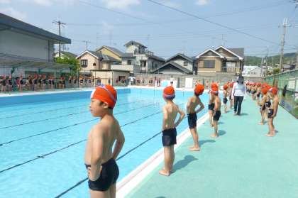 また,プールでのルールを確認しながら,