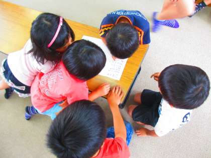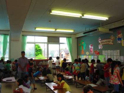3日(月)からはじまった,あじさい読書週間の取り組みの1つとして,中間休みに図書委員会主催で「題名集めゲーム」がありました。クラスの代表6名が,決められた言葉ではじまる本の題名をさがします。応援にかけつけたお友だちも一緒になって,絵本と親しんでいました。この機会を通してたくさんの本とふれあい,お気に入りの本を見つけることがいいですね。
