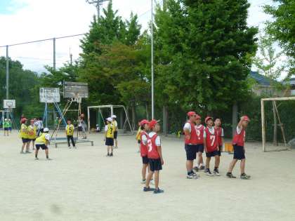 体育館のクラブ活動を参観した後、晴天に恵まれた運動場へ。