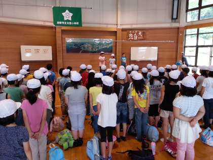 みさきの家に到着しました。早速,入所式を行いました。現地は,うす曇で京都よりも涼しく感じました。このあと,地震のときの避難訓練です。