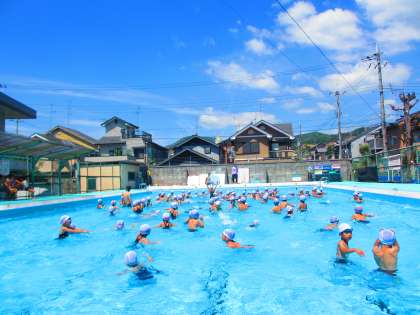 今日はとってもあつくて,プール日和でした!空の青さとプールのつめたさに,子どもたちも気持ちよさそうです。今週から本格的にはじまった水泳学習。今日は浮いたり水中でじゃんけんをしたりするだけではなく,泳ぐことにチャレンジもしてみました。今年の水泳学習もはじまったばかりです。2年生,がんばっています!