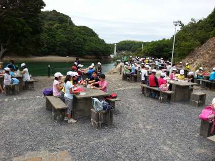 地震がきたら,どこへ非難するか。を訓練しました。その後,昼食をたべました。