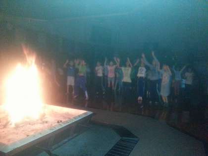 お楽しみのキャンプファイアーが始まりました。疲れも見せず、元気に歌ったり踊ったりゲームを楽しんだり、笑顔がはじけた夜になりました。