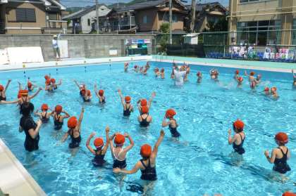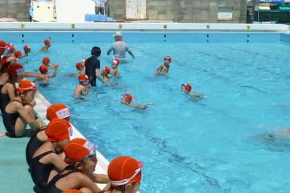 ひざくらいの水かさから,胸のあたりまでの水深になりました。