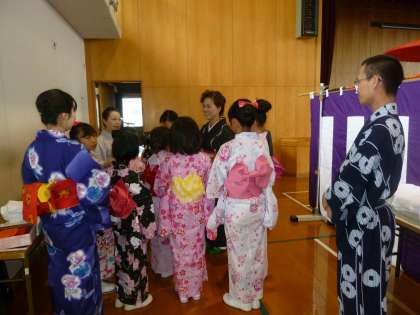 茶道部のみんなも、浴衣を着てお茶席でおもてなしをします。指導していただく先生方からも励まされ、気合が入っています。