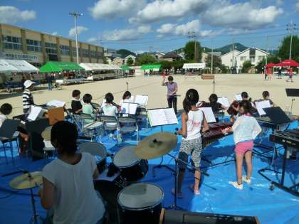 ふれあい夏祭りには、本校の子どもたちも出演します。合奏クラブもリハーサルをしています。ノリのよい曲ですね。