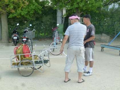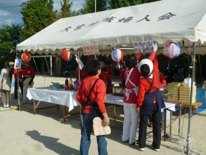 女性会の皆さんも力を合わせて準備中。教頭先生、佐野先生も協力しています。