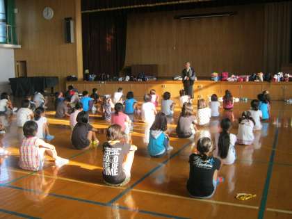 夕食の後,きもだめし等を楽しみ,就寝しました。夜は,意外と涼しく感じました。翌朝6時に起床し,身支度を整えて,小島さん(おやじの会)のお話をきいて,座禅を体験しました。