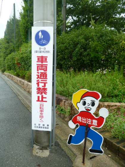 先週の金曜日、北警察署と北交通安全協会の方が、車両通行禁止の看板を取り付けてくださいました。これまでにも、標識がありましたが、見えにくいというご指摘もあって、新たに取り付けてくださいました。