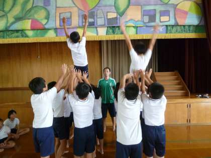 どの学年も、運動会に向けての練習をがんばっています。今日は、体育館で6年生が組体操の練習に取り組んでいました。