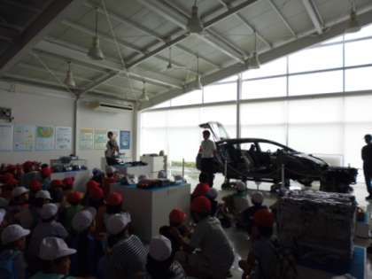 ここでは,車が解体され,使える部品はリデュース・リユース・リサイクルされているところを見学しました。